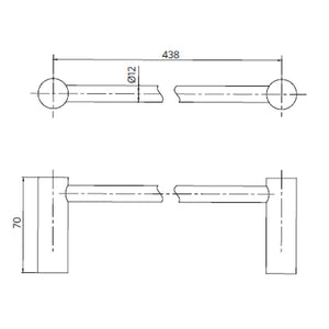 Barra de toalla con longitud apta para dejar extendidos los elementos quese quieren colgar.