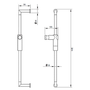 Barra para ducha con soporte para maneral ajustable y sistema de anclaje al muro.