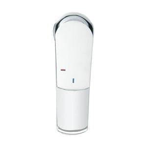 Manilla con giro en 90° que permite mezclar la temperatura del agua.