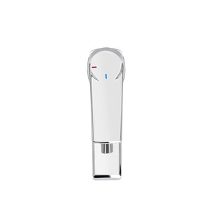 Manilla con giro en 90° que permite mezclar la temperatura del agua.