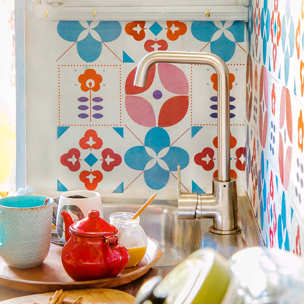 Papel mural y grifería en la cocina: Una apuesta muy decorativa