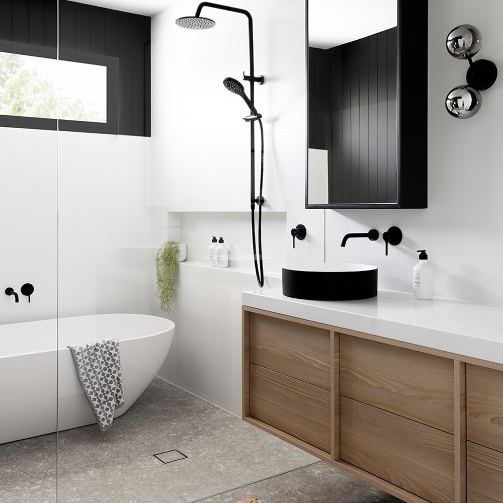 Minimalismo cálido: cómo combinar griferías negras con muros claros