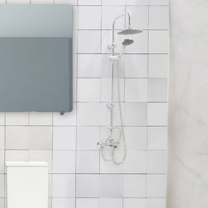 DESCRIPCIÓN Si estás pensando en darle una vuelta a tu baño, la columna de ducha Rimini es tu mejor alternativa. Con su barra y flexibles de acero inoxidable de terminación cromada, un plato de 20 cm de diámetro y un soporte ajustable para su maneral de Abs de 1 función, podrás cambiar el estilo de tu baño a uno más moderno y funcional.
