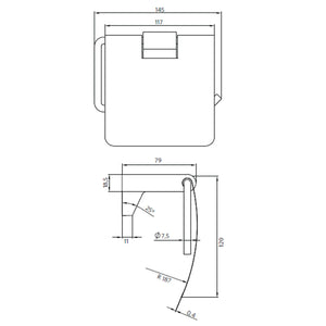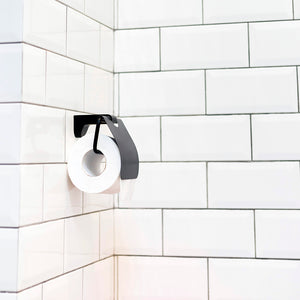 Porta rollo que posee al final del brazo un lateral vertical que se encarga de contener el papel de forma estable.